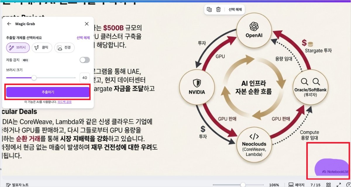 하지만 Canva의 기능을 활용하면 NotebookLM에서 생성한 PDF 슬라이드를 편집 가능한 PPT 파일로 변환하고 로고를 제거할 수 있습니다.