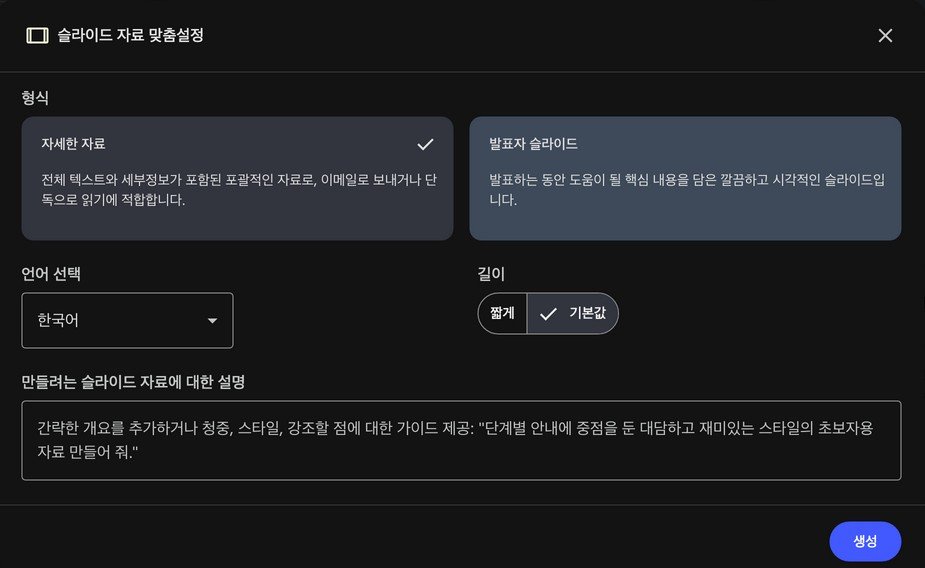 노트북LM 슬라이드 제작의 특징