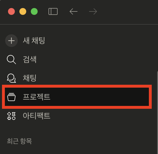 먼저 claude.ai 왼쪽 사이드바에서 “Projects” 항목을 클릭합니다.