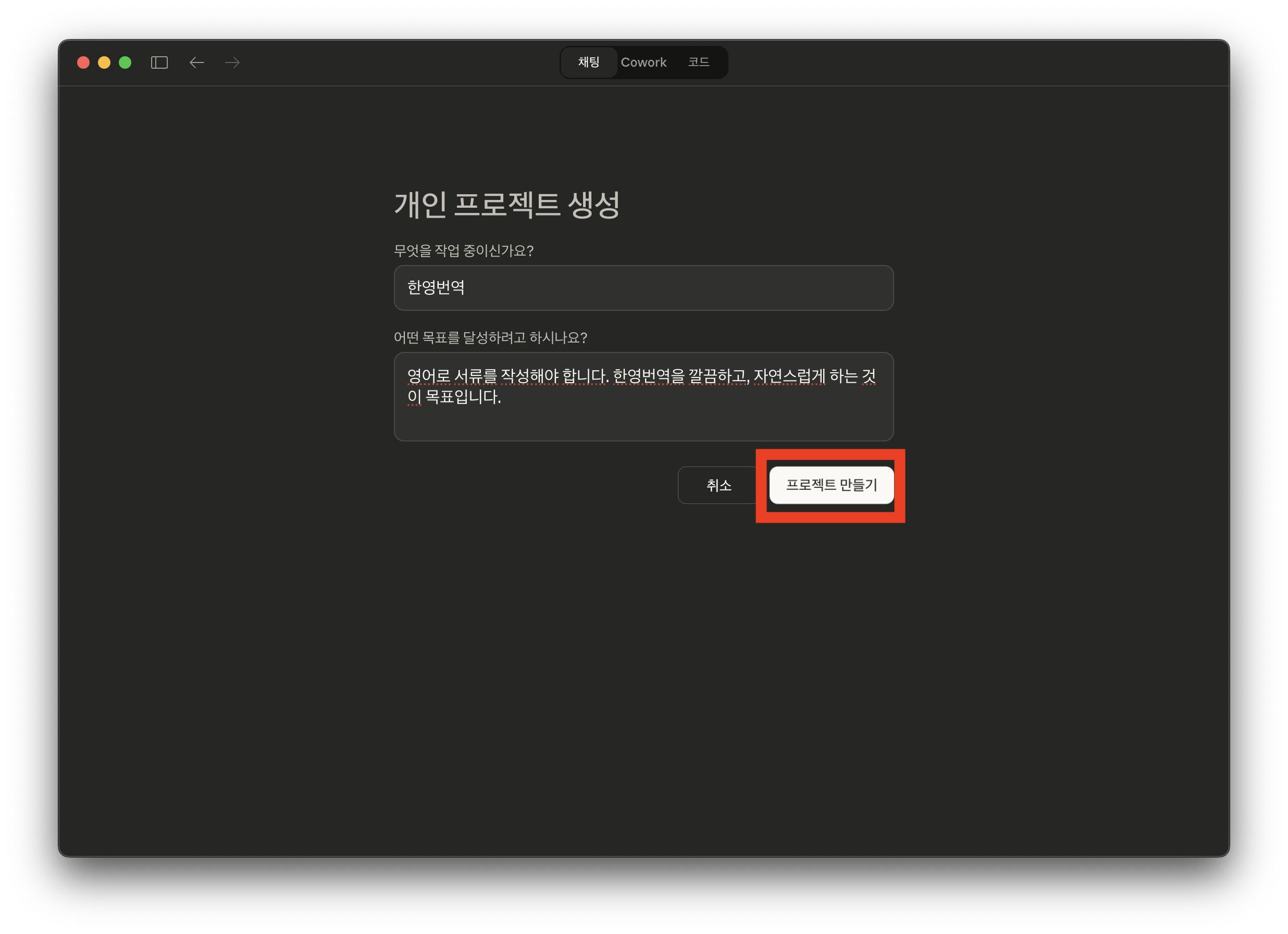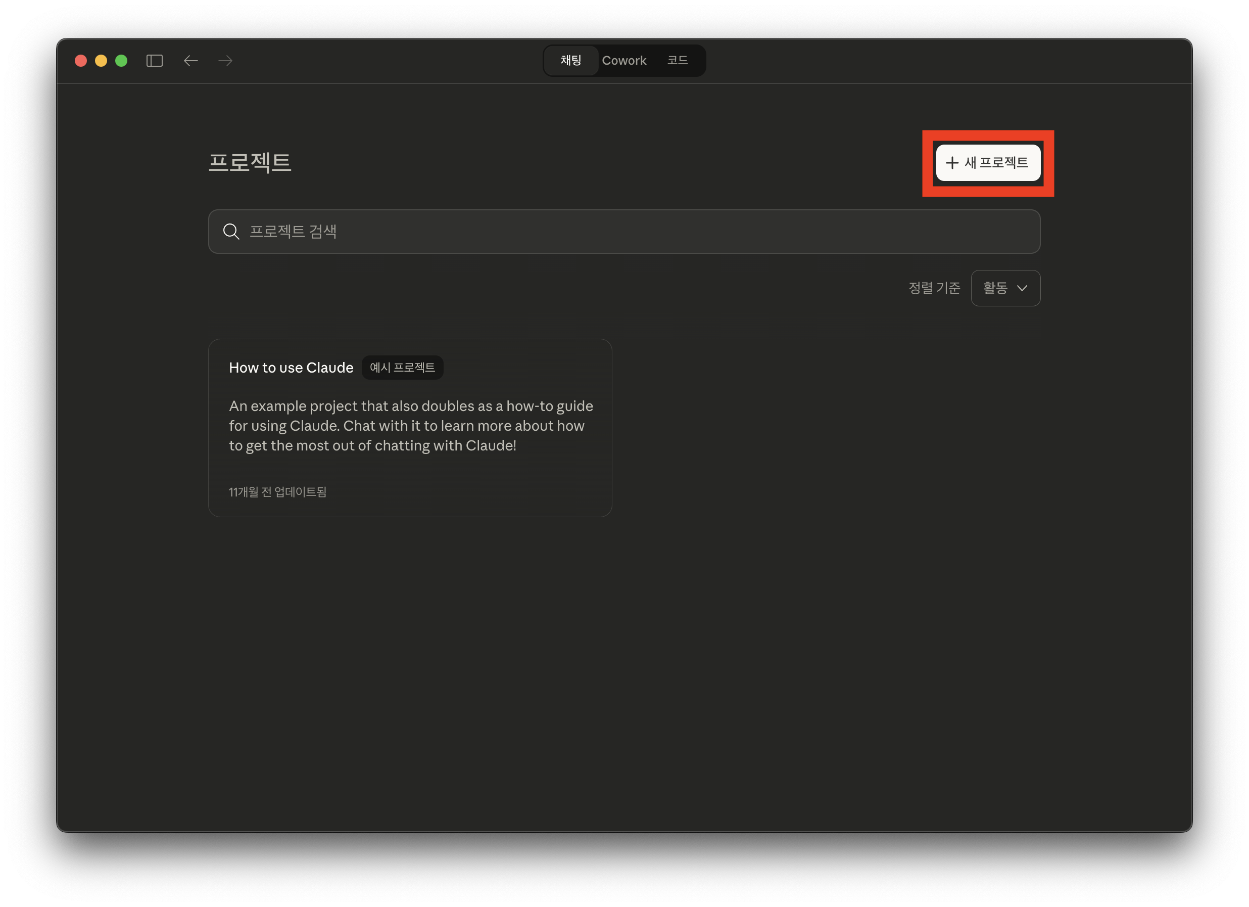 클로드 프로젝트를 만드는 과정은 간단합니다.