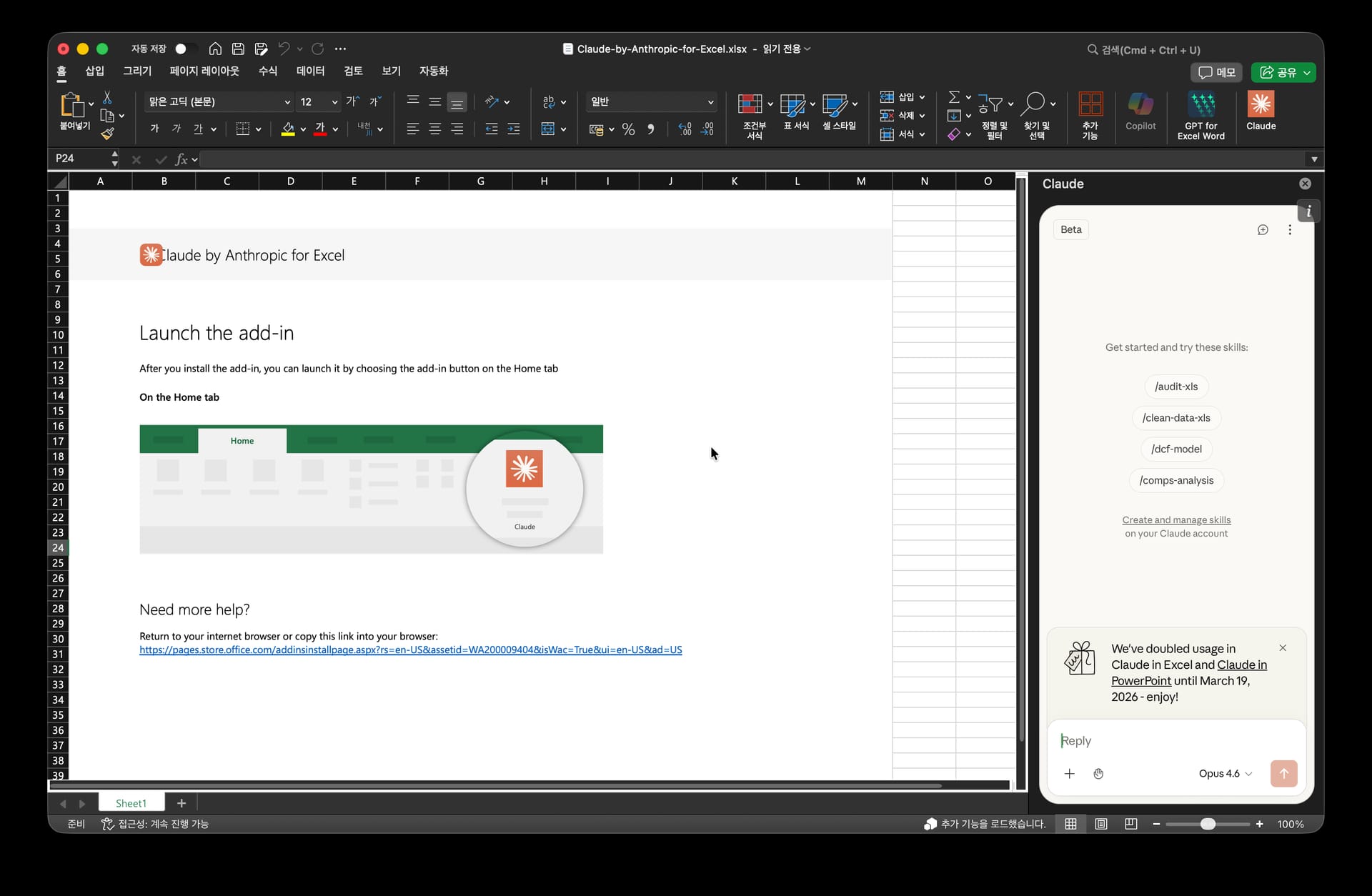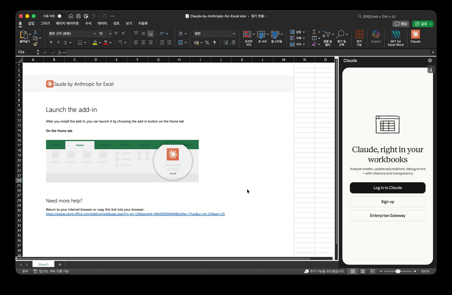 - 엑셀 안에서 클로드를 활용할 수 있다.