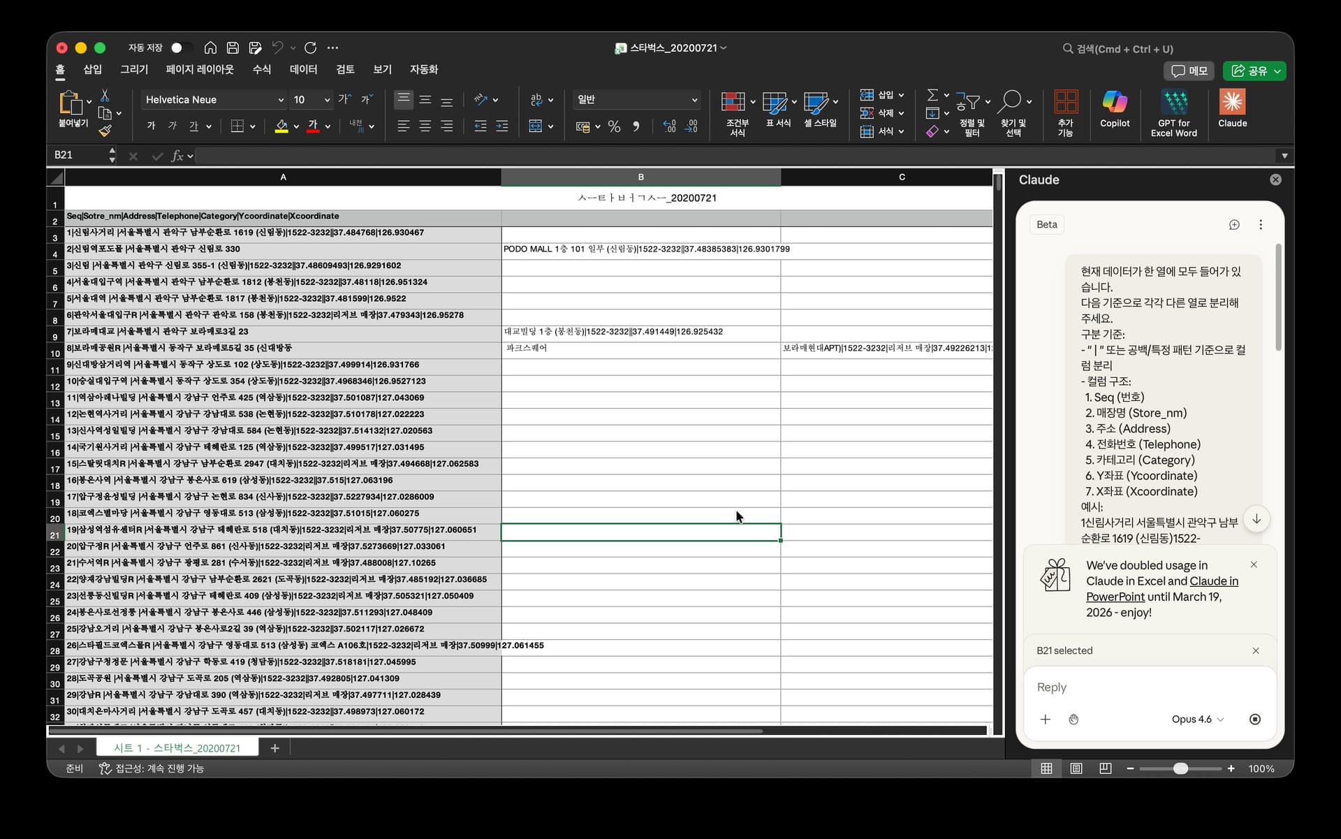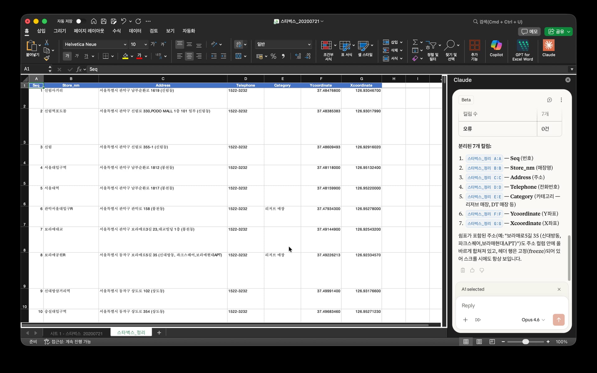 그러면 화면에 보시는것처럼 엑셀데이터를 여러분들이 원하는대로 AI를 활용해 수정할 수 있습니다.