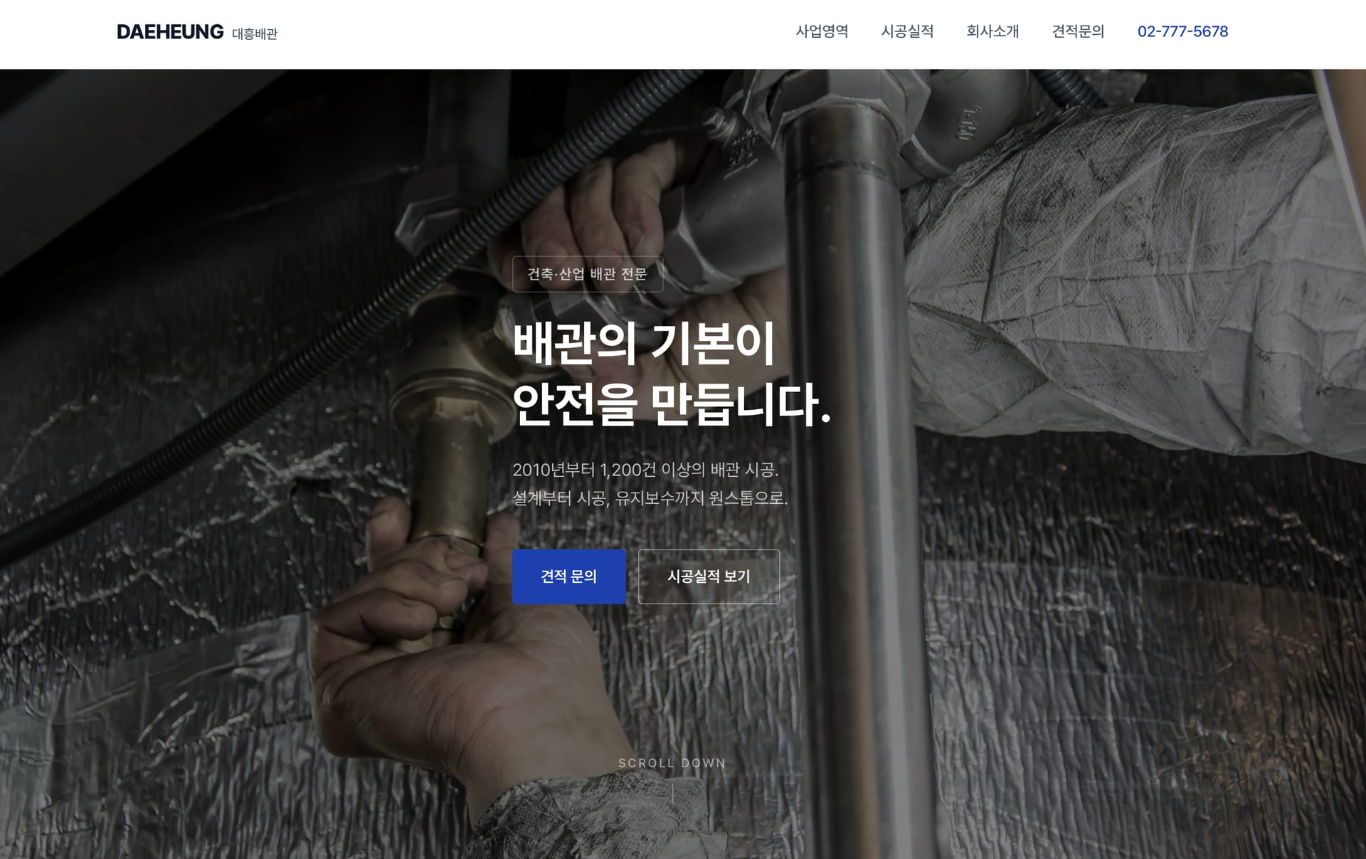 배관업체의 고객은 주로 건설사, 건물주, 인테리어 업체예요. 이들이 협력업체를 찾을 때 홈페이지가 있으면: