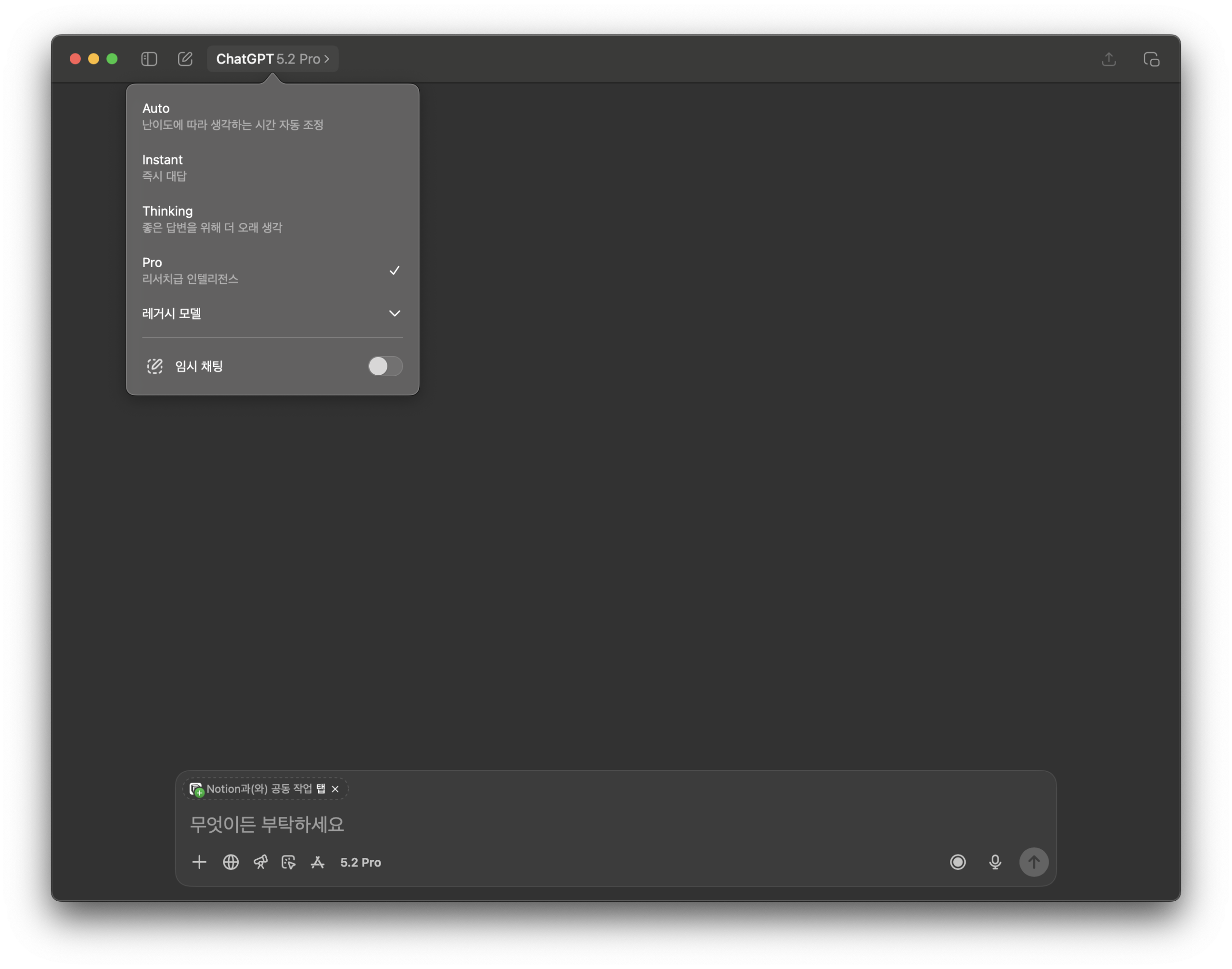 이처럼 연동이 끝나면 기존 ChatGPT 앱이나 웹 사이트에서 Pro 플랜의 기능을 동일하게 사용할 수 있습니다.