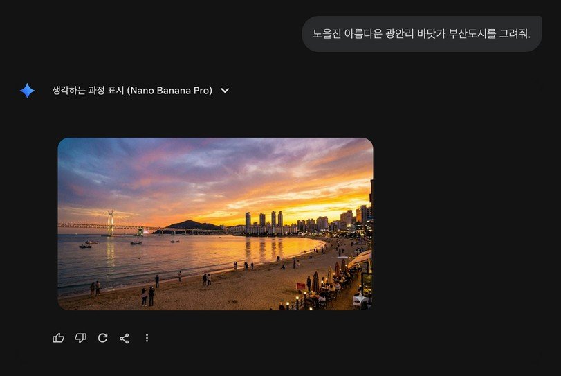 생성된 이미지에는 출처를 확인할 수 있는 SynthID 워터마크가 포함될 수 있다는 점을 참고하시기 바랍니다.
