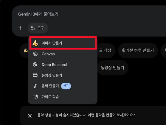- 도구 메뉴에서 ‘🍌이미지 만들기’ 선택