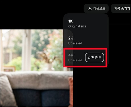 화질은 더 깔끔해보이지만, 문제가 있습니다. 여기서 4K이미지로 업스케일링해서 다운로드 받을 수 있는데요.